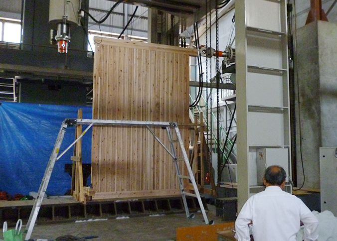 財団法人建材試験センター西日本試験所で加圧試験を行ったところ、制震構造は普通木造の2倍強いことがわかり、地震による安全性が認められました。