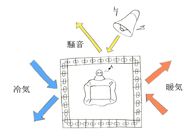 105角の材を使っているので、その厚さのお陰で断熱、防音の対策が必要ありません。その分のコストを他に回すことができます。