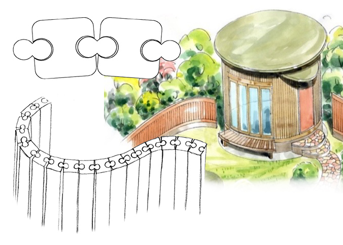 本来木造で曲線を表現することは難しいとされていますが、リアリムキットはキットの角度を変えて繋げていくことで、曲線の壁が簡単に出来上がります。