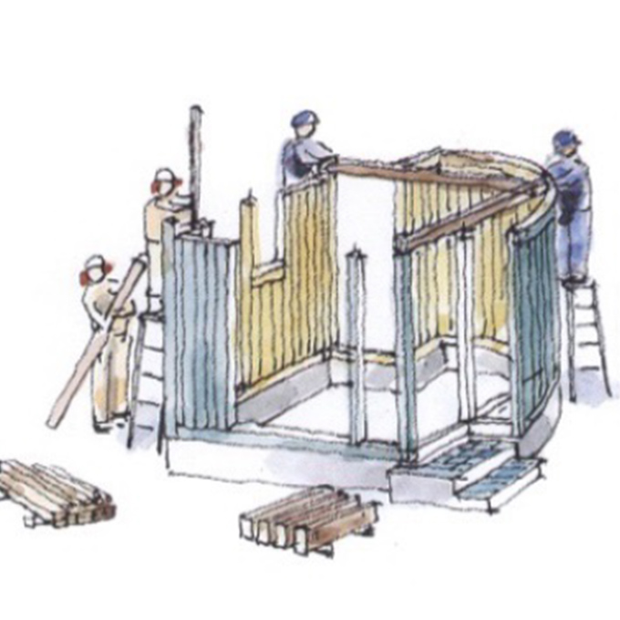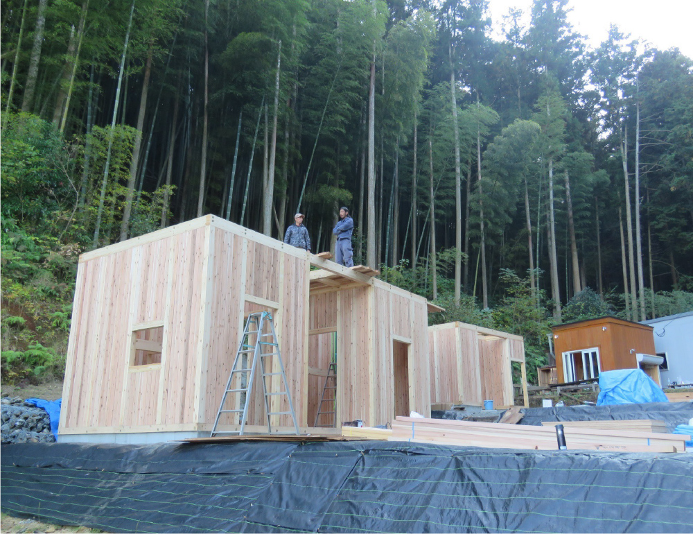 施工が非常に簡単で、壁が出来た時点で形ができるので外装板や、断熱材、ボード等の工期が省ける。材料も国産材なのですぐ手に入る。 |